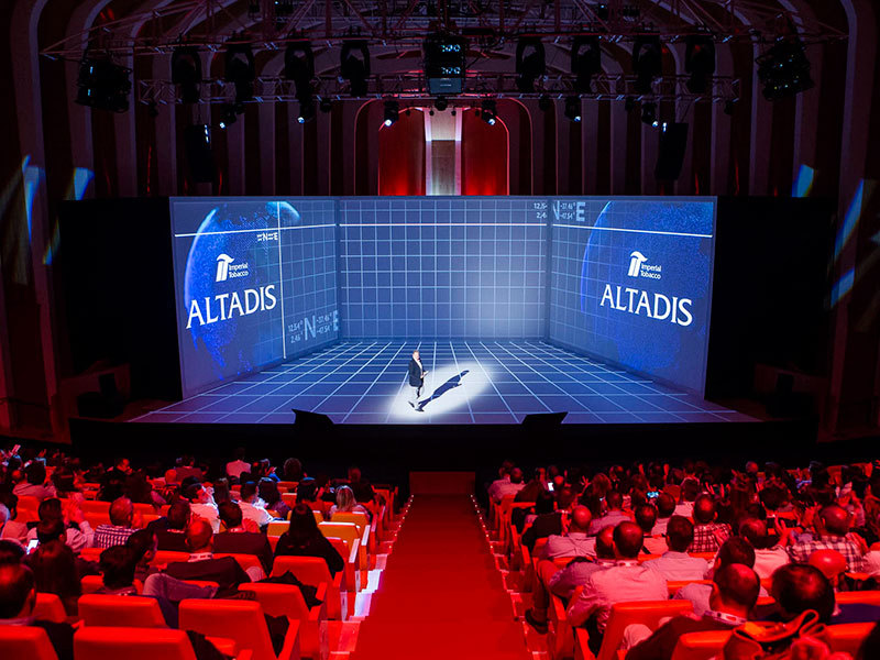 Altadis(阿達(dá)迪斯)是1999年由法國(guó)和西班牙的兩家煙草公司合并而成的新公司,是歐洲重要的煙草制造商,也是全球第六大煙草制造商,特別是雪茄業(yè)務(wù),更是全球排名第一。此次Altadis(阿達(dá)迪斯)的年度會(huì)議的一大特色就是屏幕的使用上,在科技發(fā)達(dá)的今天,竟然摒棄LED屏幕,使用起了傳統(tǒng)的投影機(jī),但整個(gè)現(xiàn)場(chǎng)的氛圍也是很贊,不遜色LED大屏投放出來的效果。