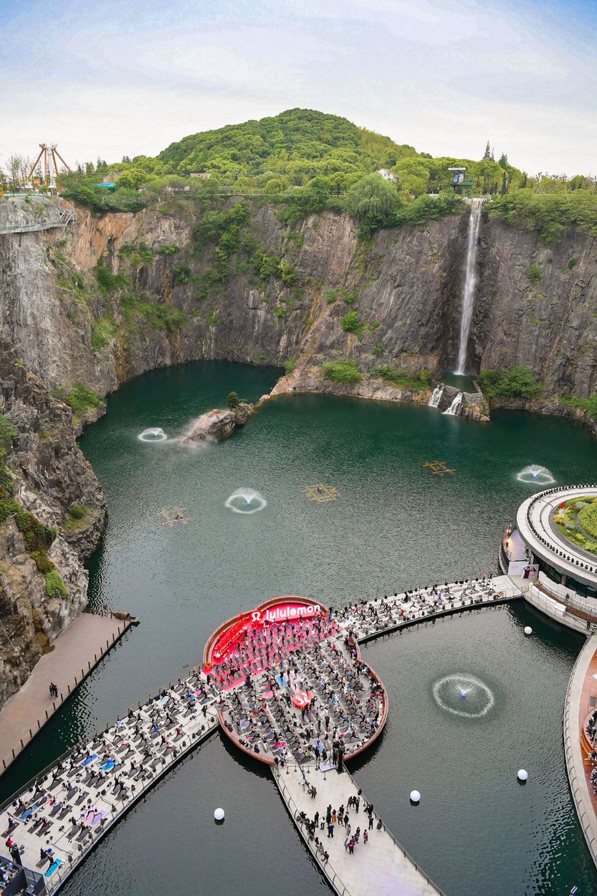 加拿大運(yùn)動(dòng)生活品牌lululemon包下了整個(gè)上海佘山世茂洲際酒店,攜手天貓,舉辦了一場“這一天,人形不設(shè)限”的天貓超級(jí)品牌日活動(dòng),整個(gè)酒店從宴會(huì)廳到前廳,再到戶外,百人瑜伽、冥想課堂、動(dòng)感單車、攀巖等各類熱汗項(xiàng)目齊聚,就連過道都是lululemon的秀場,更有上百人身著運(yùn)動(dòng)衣在酒店上演了一次“集訓(xùn)課堂”。