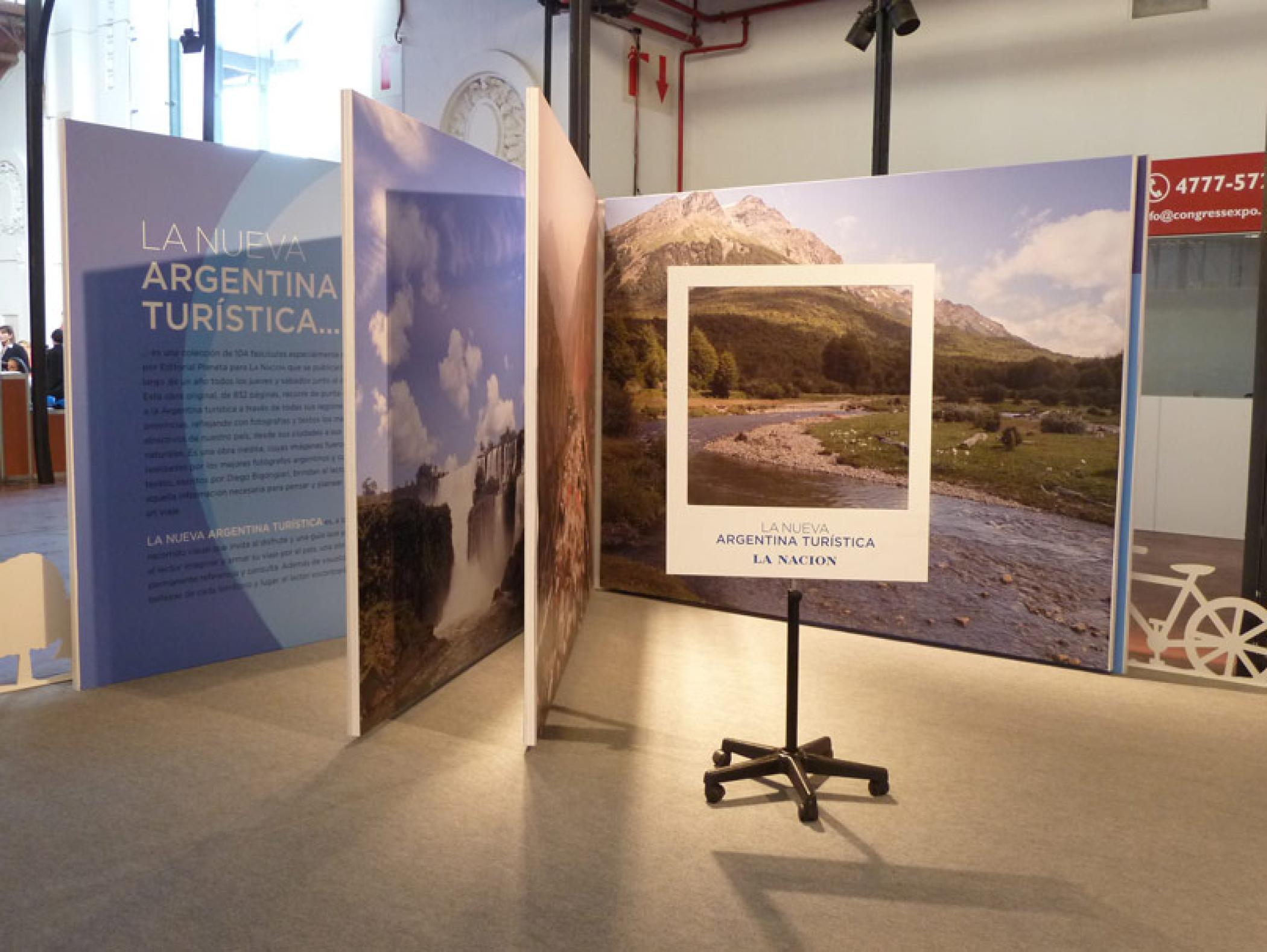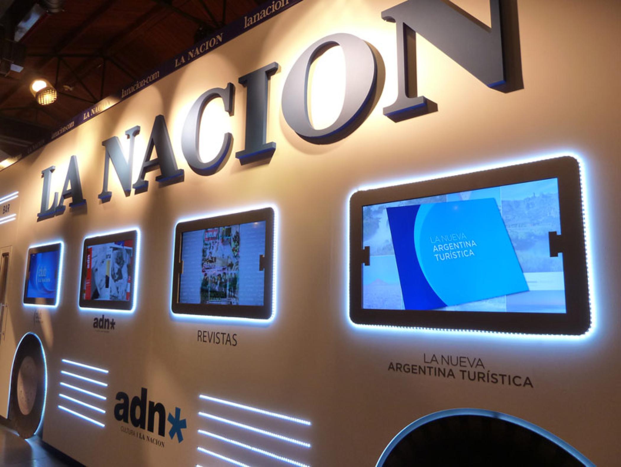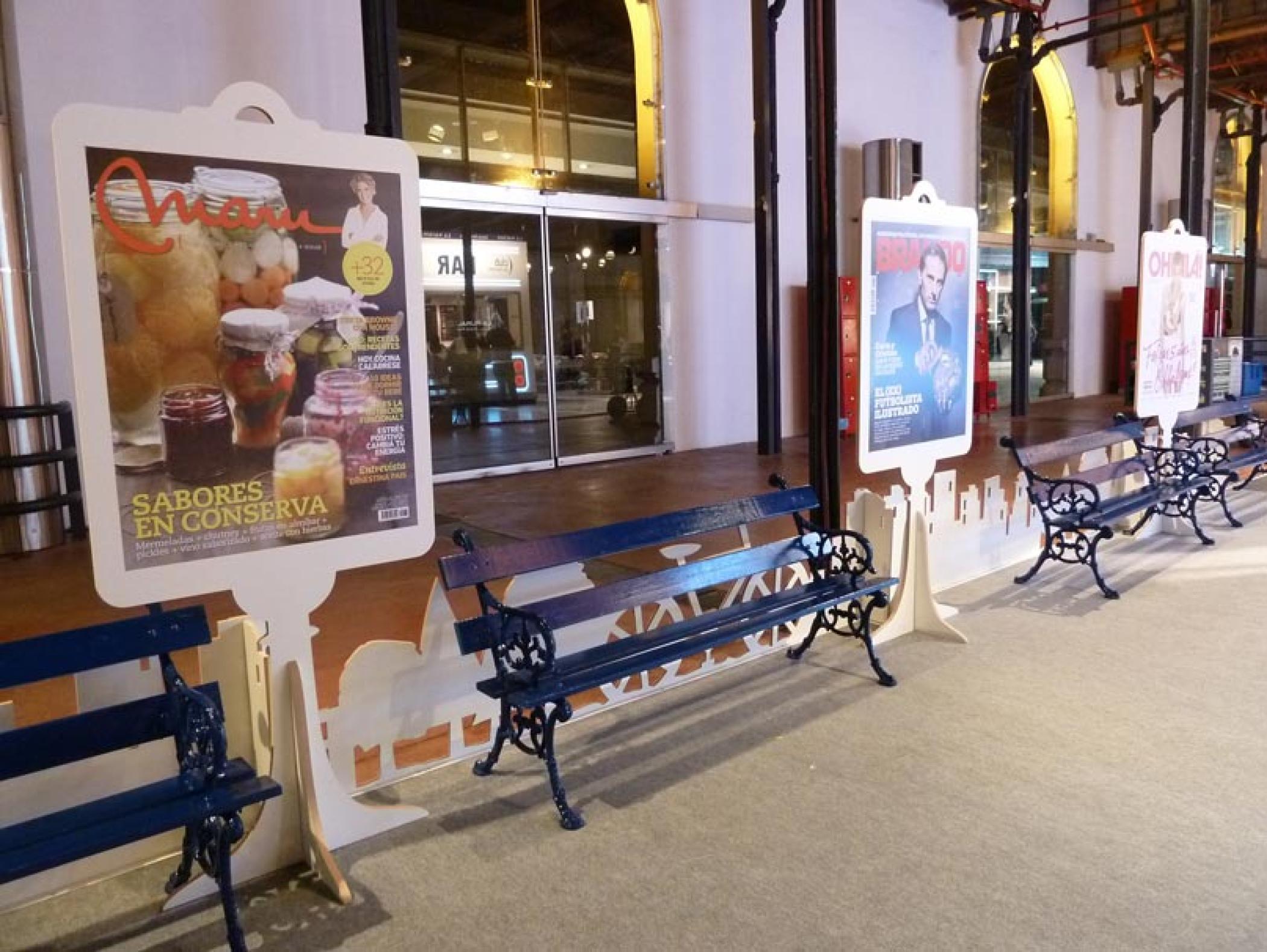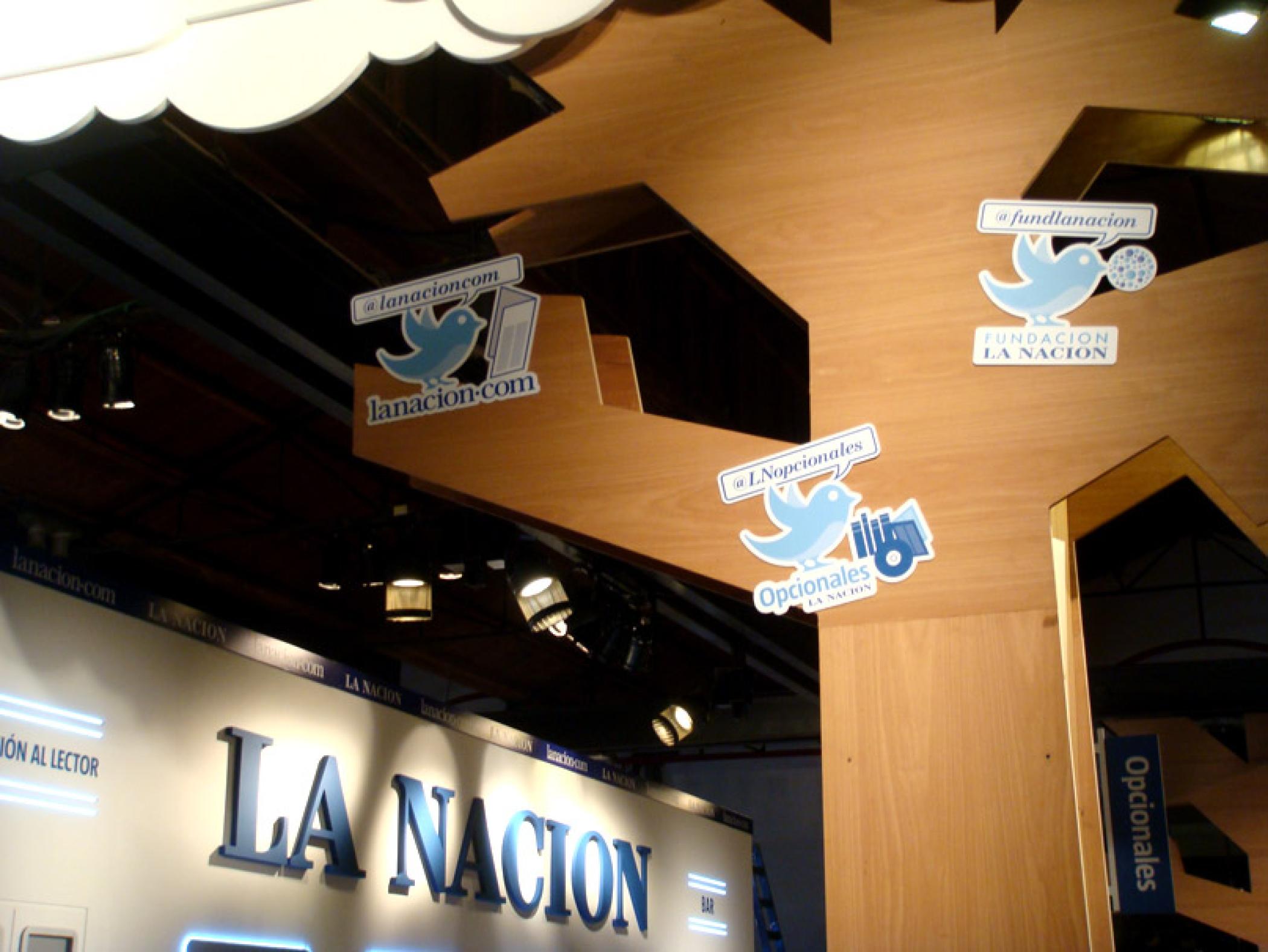 阿根廷書展《民族報(bào)》展覽活動(dòng)策劃現(xiàn)場(chǎng)提供了社區(qū)公園一樣的長(zhǎng)椅,客人可以坐在一個(gè)安靜的地方閱讀報(bào)紙和雜志。街道交匯處的中心是一個(gè)公共交通工具“巴士車”。巴士車的前部模擬了司機(jī)駕駛室,這里成為了客戶服務(wù)臺(tái)。而底部則是《民族報(bào)》酒吧的柜臺(tái)。車身的窗口被液晶顯示屏替代,不斷地播放該報(bào)紙的不同產(chǎn)品:雜志、電子報(bào)、Club LN、ADN 等。整個(gè)展示活動(dòng)空間的形式和色彩選擇了對(duì)綜合美學(xué)的追求,即營(yíng)造了城市環(huán)境也清楚地突出不同的《民族報(bào)》產(chǎn)品。大部分元素都是白色,這給空間帶來了特殊的亮度和廣度(寬敞感),突出了藍(lán)色的細(xì)節(jié),品牌顏色和樹木和桌子上木材色則給客人帶來了生活氣息與溫暖感。