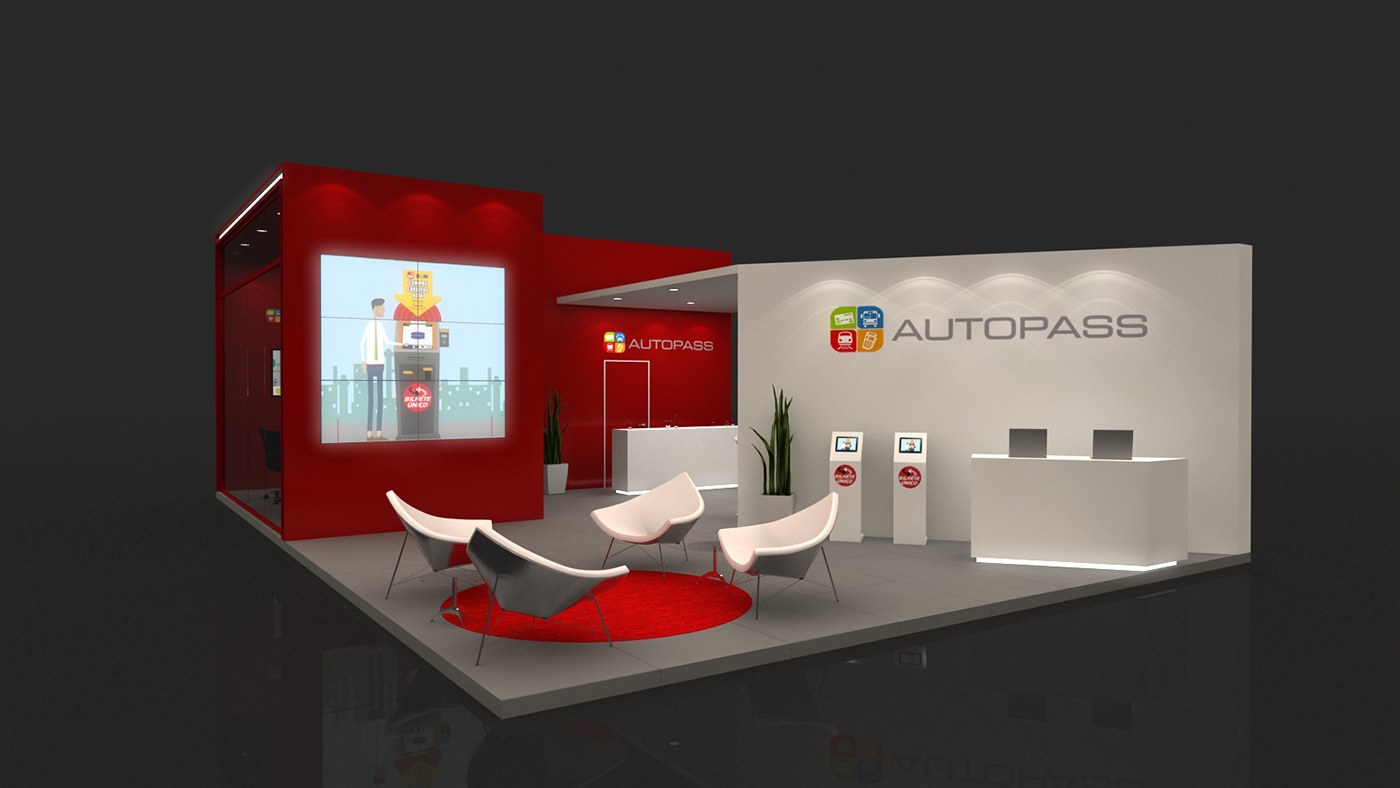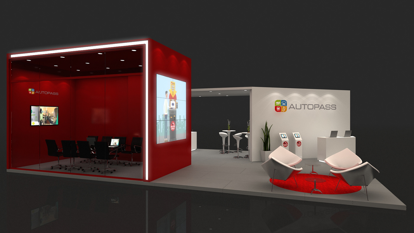 Autopass這次的展位設(shè)計(jì)干凈利落,線條簡潔分明,用鮮艷的紅色為主色調(diào),以此吸引更多參展觀眾駐留,期間還設(shè)置了一個小型的會議室空間,意向客戶可以在此進(jìn)行業(yè)務(wù)商榷。