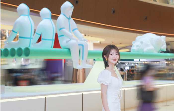 展覽位處廣州太古匯商場M層,共設(shè)兩個展區(qū)。其中,中心展區(qū)呈環(huán)形布局,由綠植和花卉圖案環(huán)繞,仿如空降鬧市的絢爛叢林世界。展區(qū)內(nèi)陳列著五座栩栩如生的動物雕塑,分別以北極熊、金絲猴、考拉、鯨頭鸛、小熊貓這幾種易危或瀕危動物為形象。這些獨具匠心的作品均出自加拿大著名藝術(shù)家Laurence Vallières女士之手,她擅長使用硬紙殼等可再生物料重現(xiàn)動物的神情動態(tài),為平凡物件賦予不凡的二次生命,以藝術(shù)創(chuàng)作為媒介,表達(dá)對地球生態(tài)的深切關(guān)注思考。