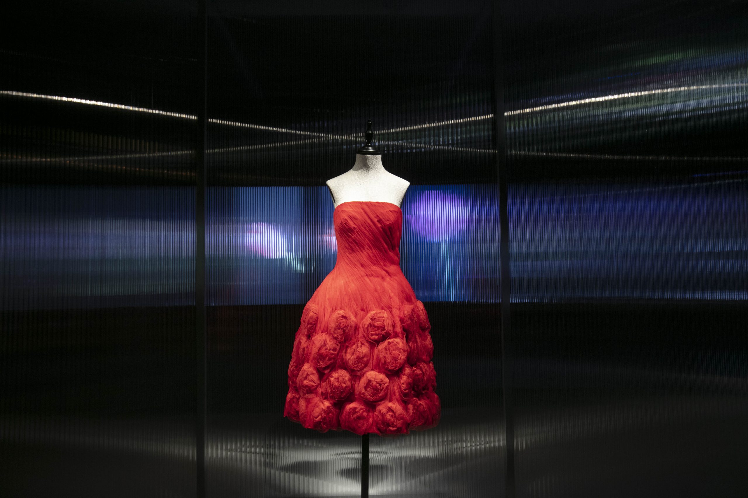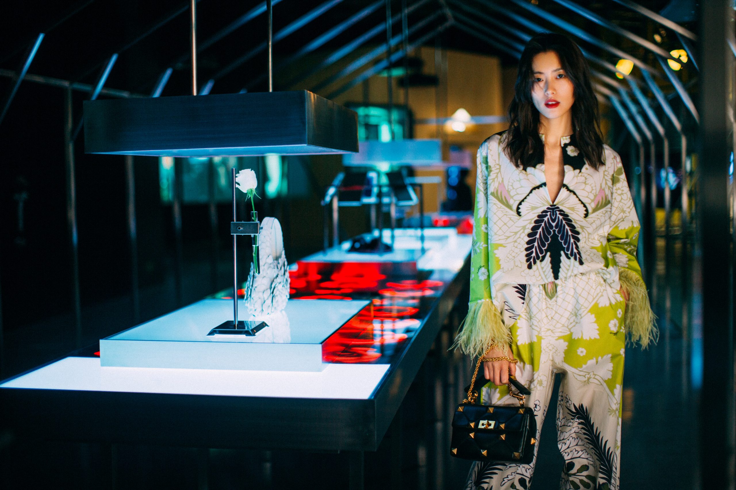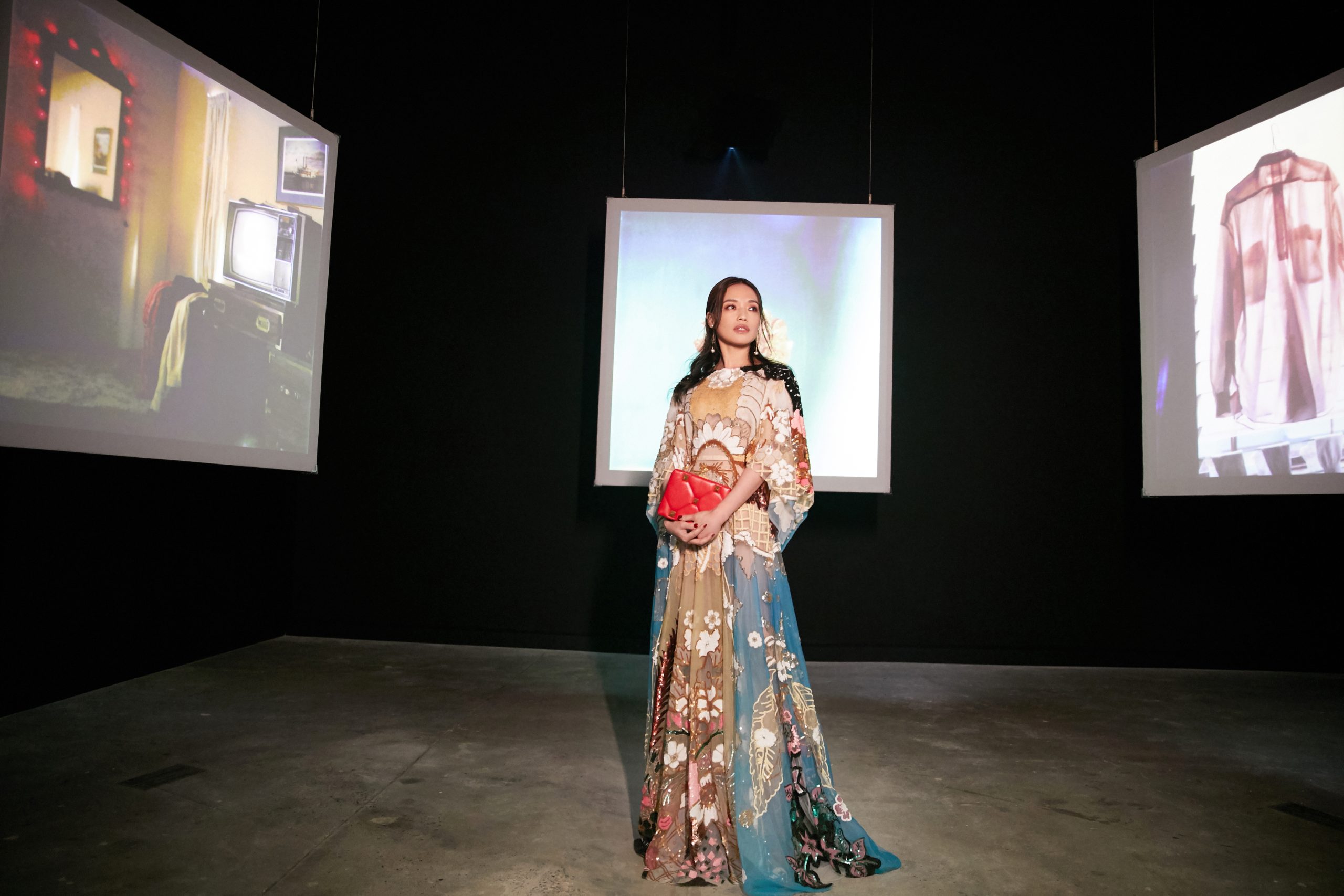 在這沉浸式的空間內(nèi)實(shí)現(xiàn)了當(dāng)代藝術(shù)與設(shè)計領(lǐng)域的兼容并蓄,我們可以看到華倫天奴從過去到現(xiàn)在的所有典藏之作:鉚釘、玫瑰配飾、輪廓巨大的的秋冬2020高級定制華服, 當(dāng)中更包括優(yōu)秀藝術(shù)家曹斐、Jacopo Benassi、Jonas Mekas、Stanley Mouse、Robby Mueller、Quayola、Anna Ridler、Rachel Rose、Solve Sundsbo、Natalia Trejbalova e Weirdcore 的作品。