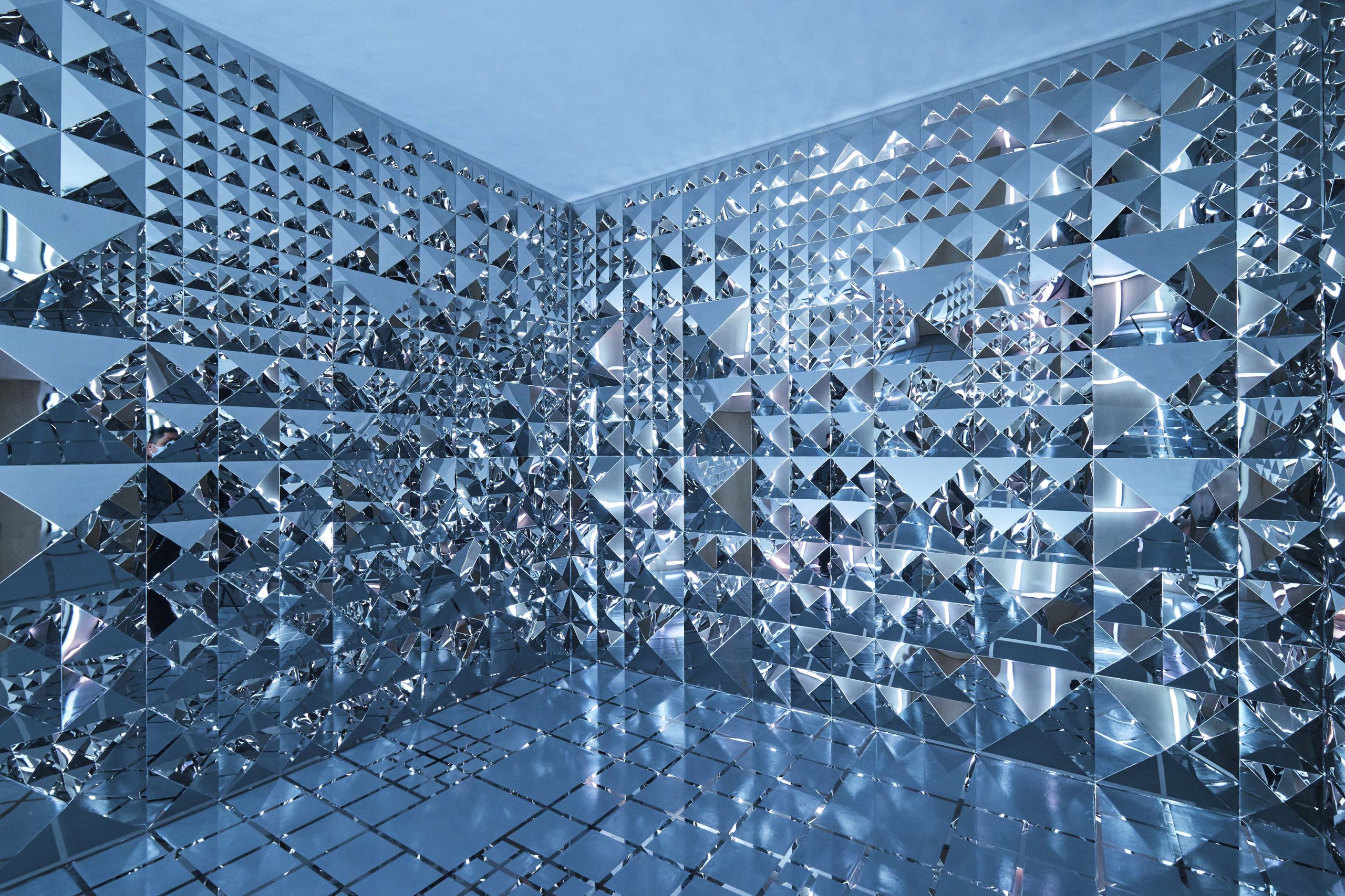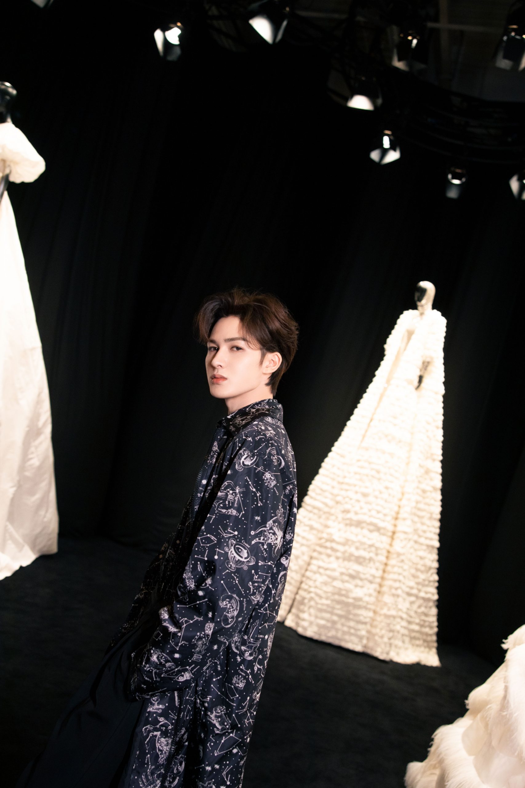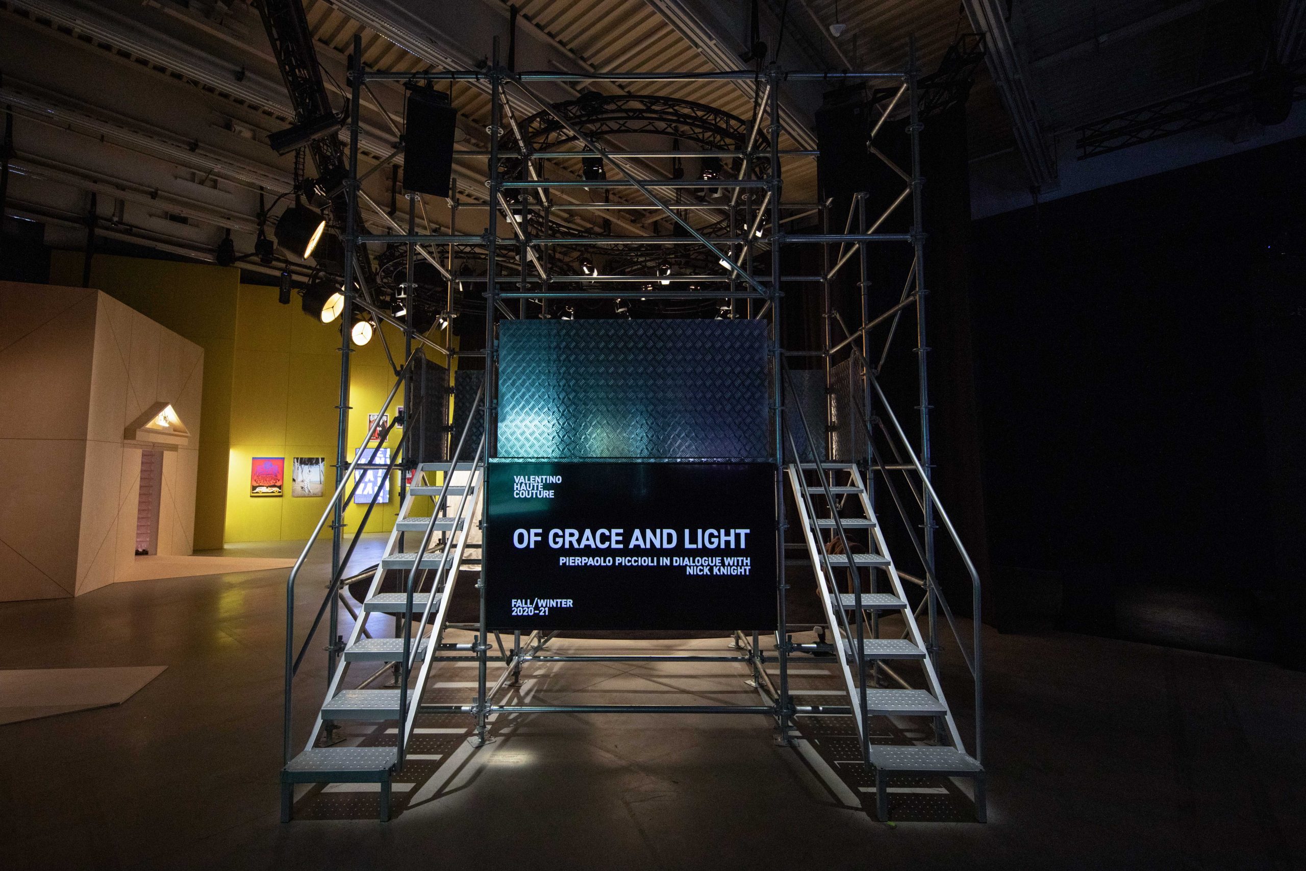 在這沉浸式的空間內(nèi)實(shí)現(xiàn)了當(dāng)代藝術(shù)與設(shè)計領(lǐng)域的兼容并蓄,我們可以看到華倫天奴從過去到現(xiàn)在的所有典藏之作:鉚釘、玫瑰配飾、輪廓巨大的的秋冬2020高級定制華服, 當(dāng)中更包括優(yōu)秀藝術(shù)家曹斐、Jacopo Benassi、Jonas Mekas、Stanley Mouse、Robby Mueller、Quayola、Anna Ridler、Rachel Rose、Solve Sundsbo、Natalia Trejbalova e Weirdcore 的作品。