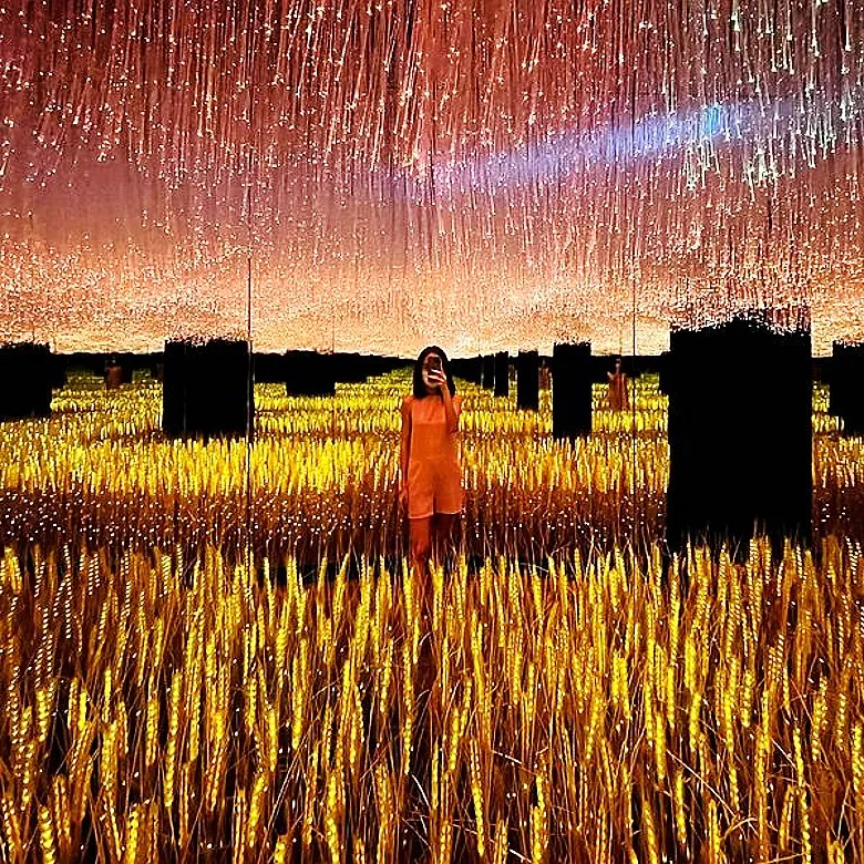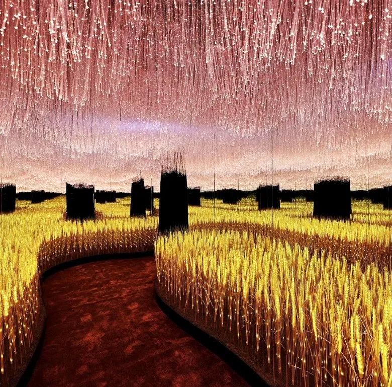 The Macallan與英國著名流行藝術(shù)家Peter Blake最新合作的Anecdotes of Ages Collection,現(xiàn)已于K11 MUSEA內(nèi)展出。展覽作品靈感來自蘇格蘭斯佩塞麥卡倫莊園的大麥田,利用鏡子反射營造無限大麥田的錯覺視覺,效果浪漫唯美,同時亦展示13瓶極其希有的1967年威士忌酒瓶。麥田由燈光控制,在一片黃金海的顏色中,頗為浪漫。天花板處也掛了燈飾,營造不同的光影效果。場內(nèi)有千粒麥田,在光影下,可以看到一片金黃發(fā)光麥田,超唯美浪漫,有效利用鏡子的反射效果,自拍效果美爆朋友圈。