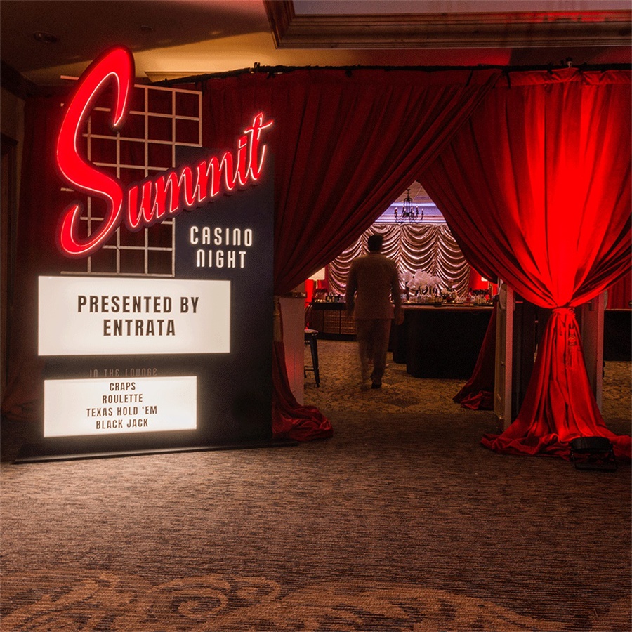 Entrata峰會之賭場之夜派對,尚逸文化小編不得不感概其想法很新穎啊,整個派對策劃現(xiàn)場以懷舊感覺的老拉斯維加斯的風格,以激發(fā)客人對這個“賭場之夜”派對的感官。當客人們走過一個復古風格的大帳篷招牌入口,走進一個紅色的房間時,時光倒流,客人們圍坐在桌子旁,玩著骰子、輪盤賭、德州撲克和黑杰克,直到夜幕降臨。
