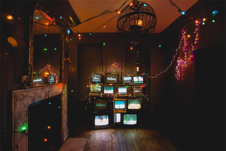 為配合由Mulberry發(fā)起的“12天圣誕節(jié)”假期活動,該品牌在Soho的黑人俱樂部舉辦了一場獨家派對。 根據(jù)夏洛特·威爾士拍攝的動作影片,該活動公司制作了一個建筑投影內(nèi)容,為晚會定下基調(diào)。 在到達區(qū)域的留影墻背景一面復古的電視顯示器墻,顯示各種各樣的內(nèi)容,整個派對活動占據(jù)了三層樓。