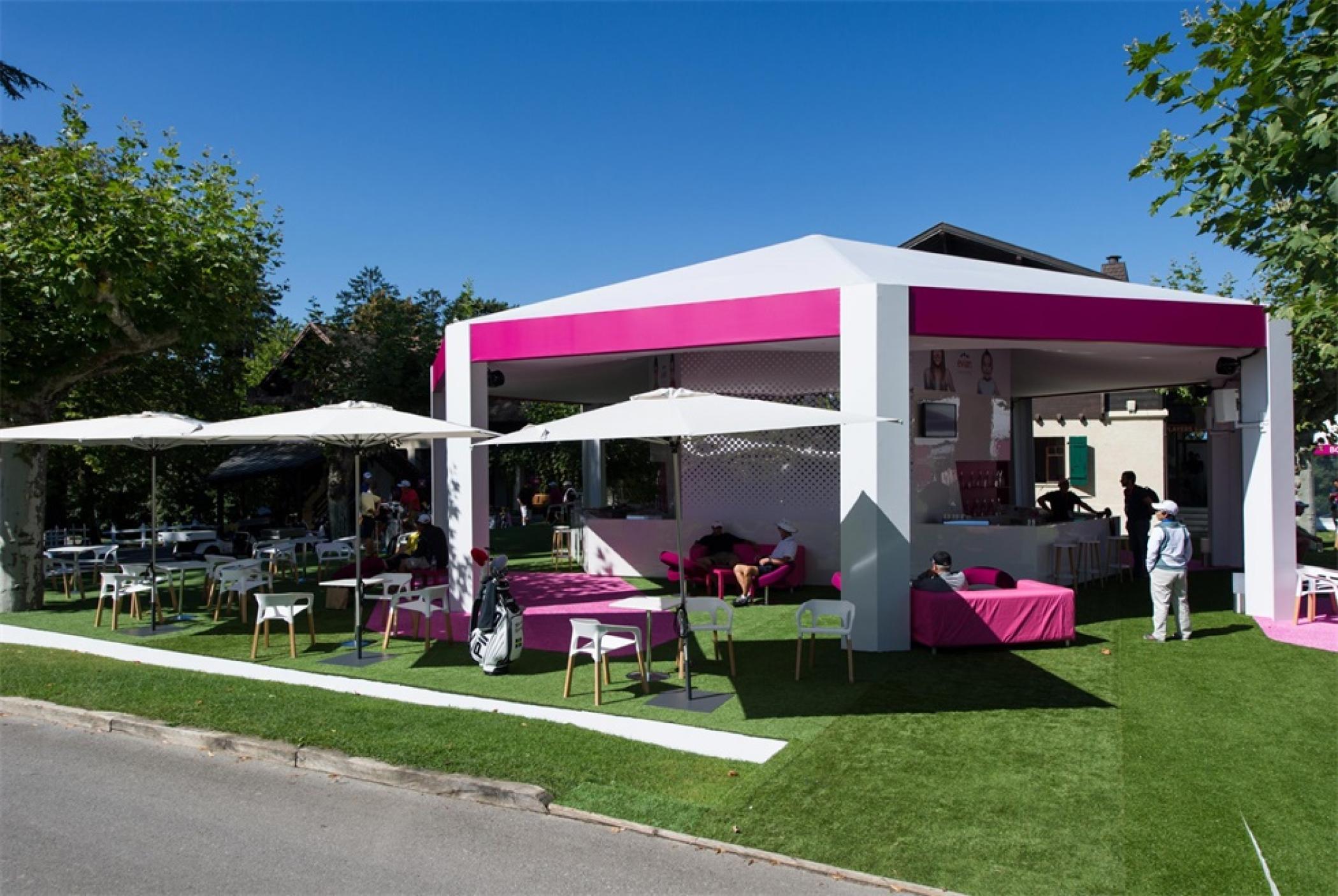酒吧以白色、梅紅色和綠色為基色,通過(guò)優(yōu)雅、整潔的酒吧設(shè)計(jì)和家具來(lái)展示女子高爾夫比賽的氣質(zhì),透露出一種女性輕盈的感覺(jué),和Evian(依云)礦泉水清爽高端的定位,讓酒吧成為了比賽現(xiàn)場(chǎng)一個(gè)理想的與品牌融合的,交流區(qū)。