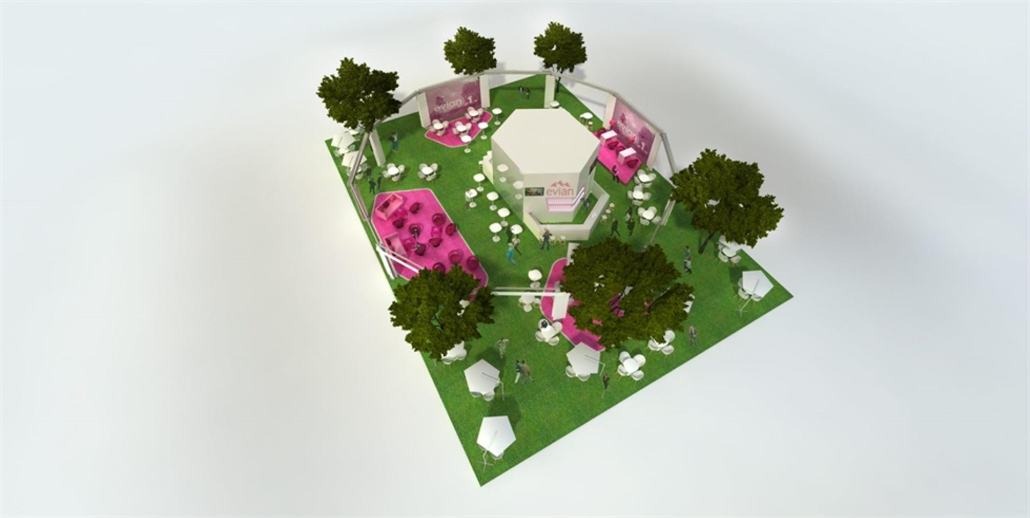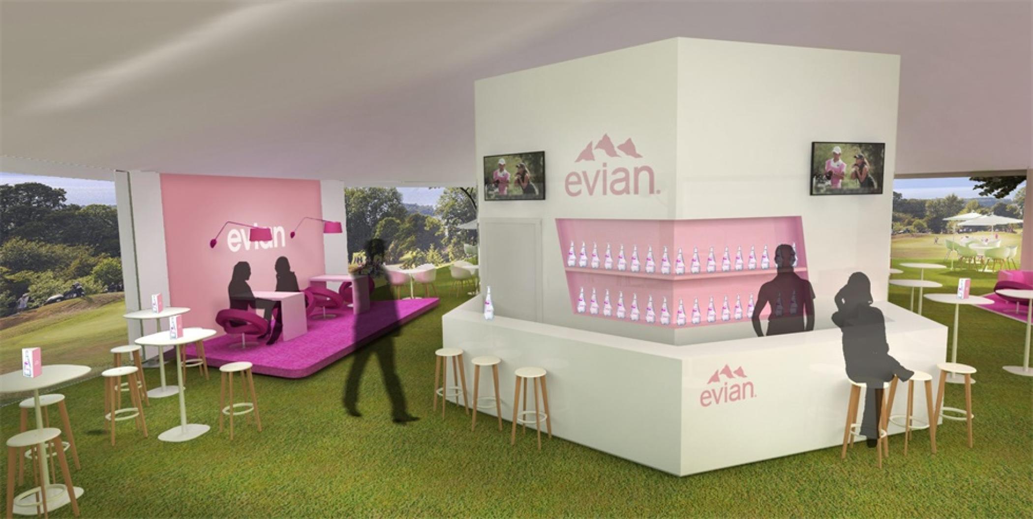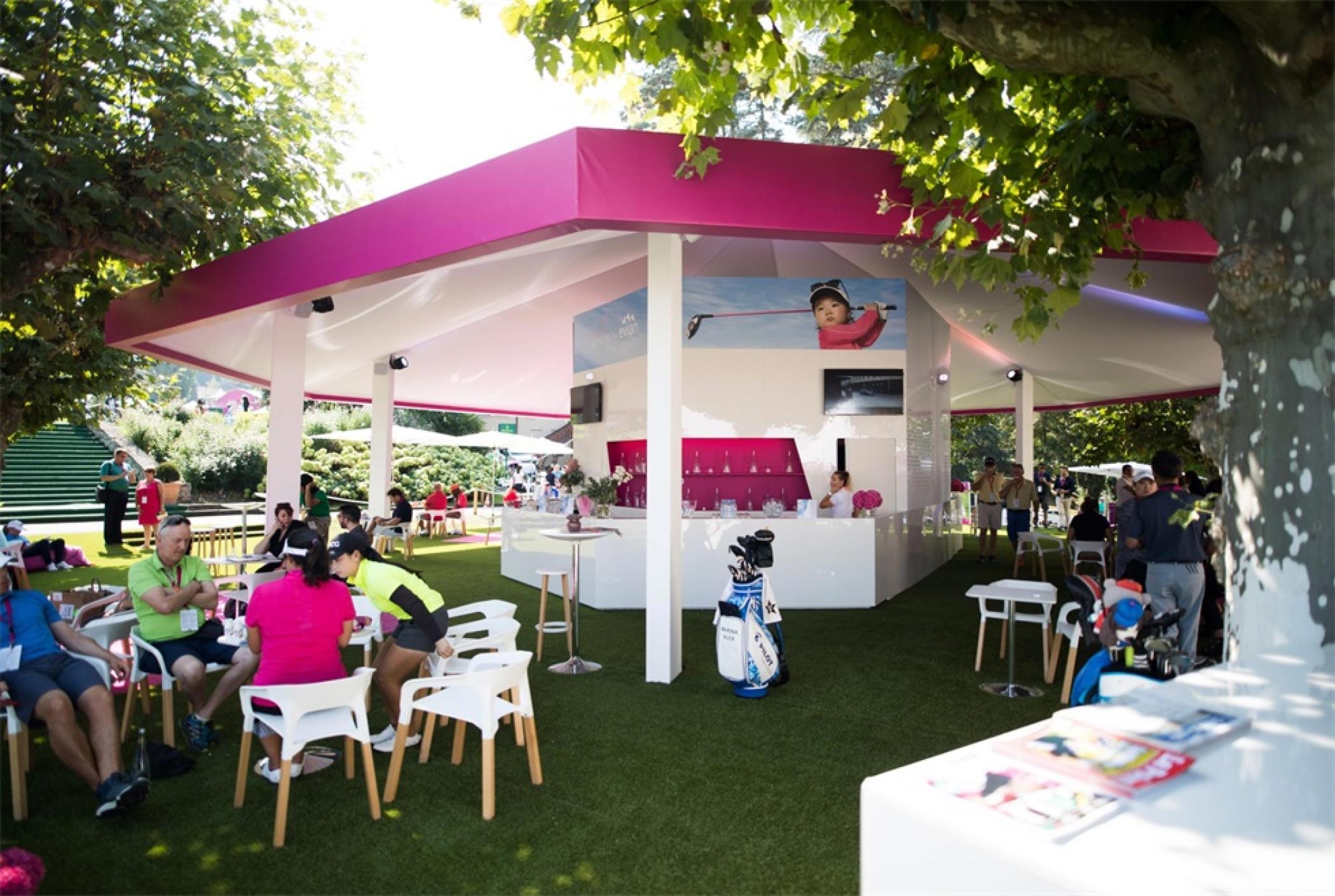Evian(依云)贊助了女子高爾夫錦標(biāo)賽,在活動(dòng)現(xiàn)場(chǎng)設(shè)計(jì)制作了一個(gè)大約200平方米的接待運(yùn)動(dòng)員、普通公眾的休閑區(qū)域,同時(shí)也兼具品牌展示與產(chǎn)品體驗(yàn)功能。