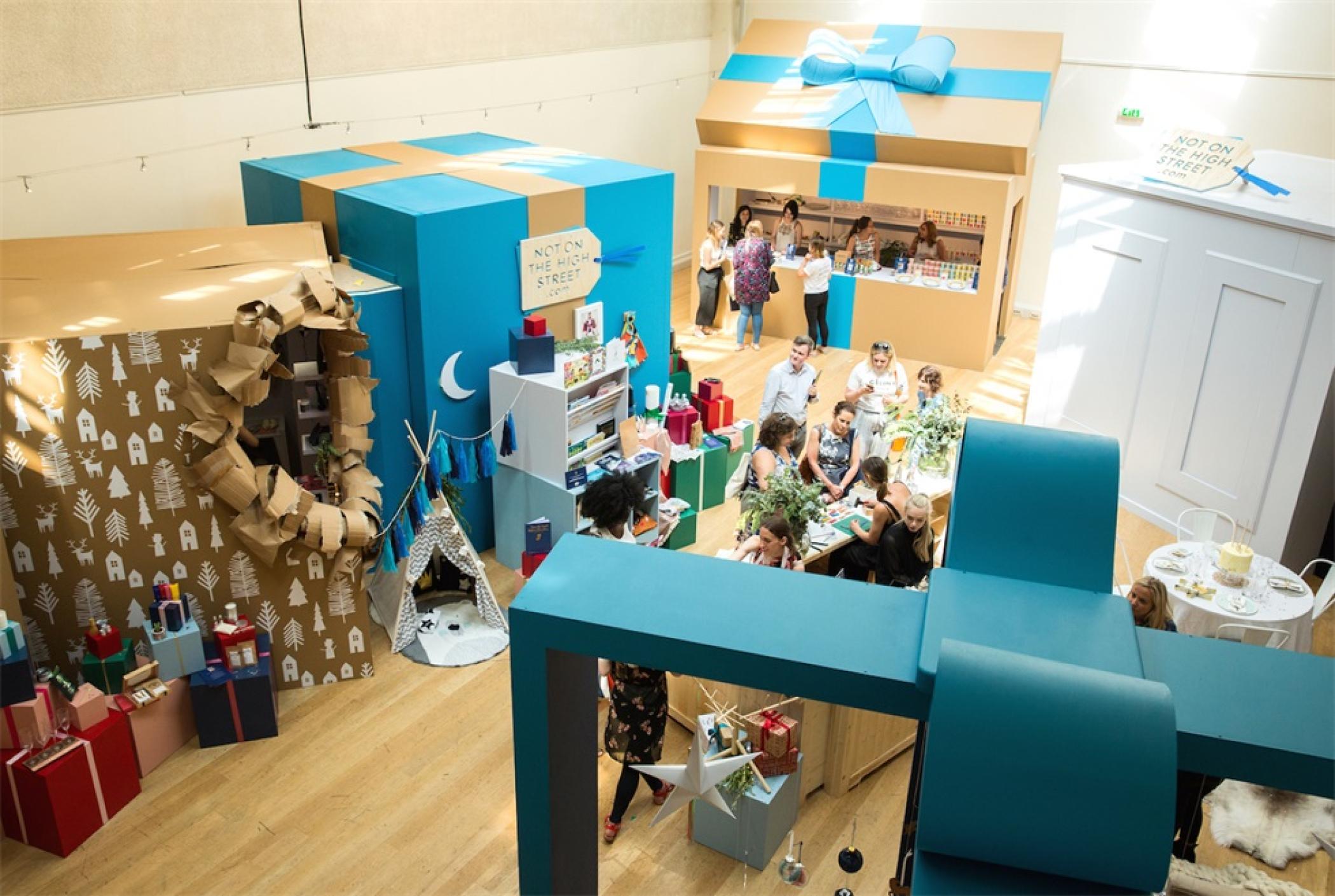 Not on The High Street是一家英國著名的老牌在線時裝禮品零售商城,主要為那些具有獨一無二、極具個性的禮物商家提供網(wǎng)上交易平臺。此次圣誕快閃式推廣活動策劃設(shè)計和搭建一個充滿靈感的互動展示活動來展示網(wǎng)站銷售的各種圣誕產(chǎn)品,提出了巨型圣誕禮物盒概念,現(xiàn)場的視覺設(shè)計全部圍繞著圣誕禮物盒進行,有的大到足以讓客人走進參觀。