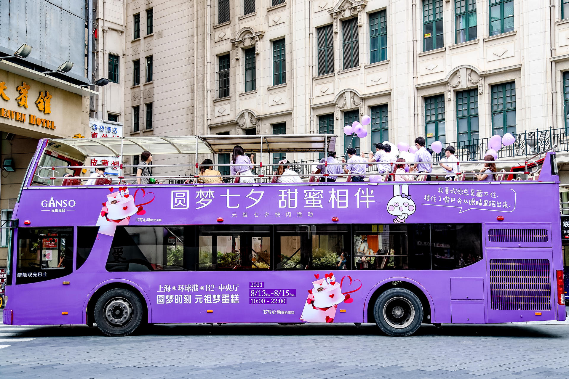 元祖還開啟“全城告白,心球快閃”巡回活動,一輛代表品牌形象的紫色圓夢巴士將載著kol、紫衣男模等在市區(qū)巡游,沿路會經(jīng)過豫園城隍廟、外灘、上海博物館、南京步行街、杜莎夫人蠟像館、南外灘老碼頭等知名景點,路人可自由乘坐表白巴士進行觀光,在一些站點男模還會下車與路人驚喜互動,送出繽紛氣球。