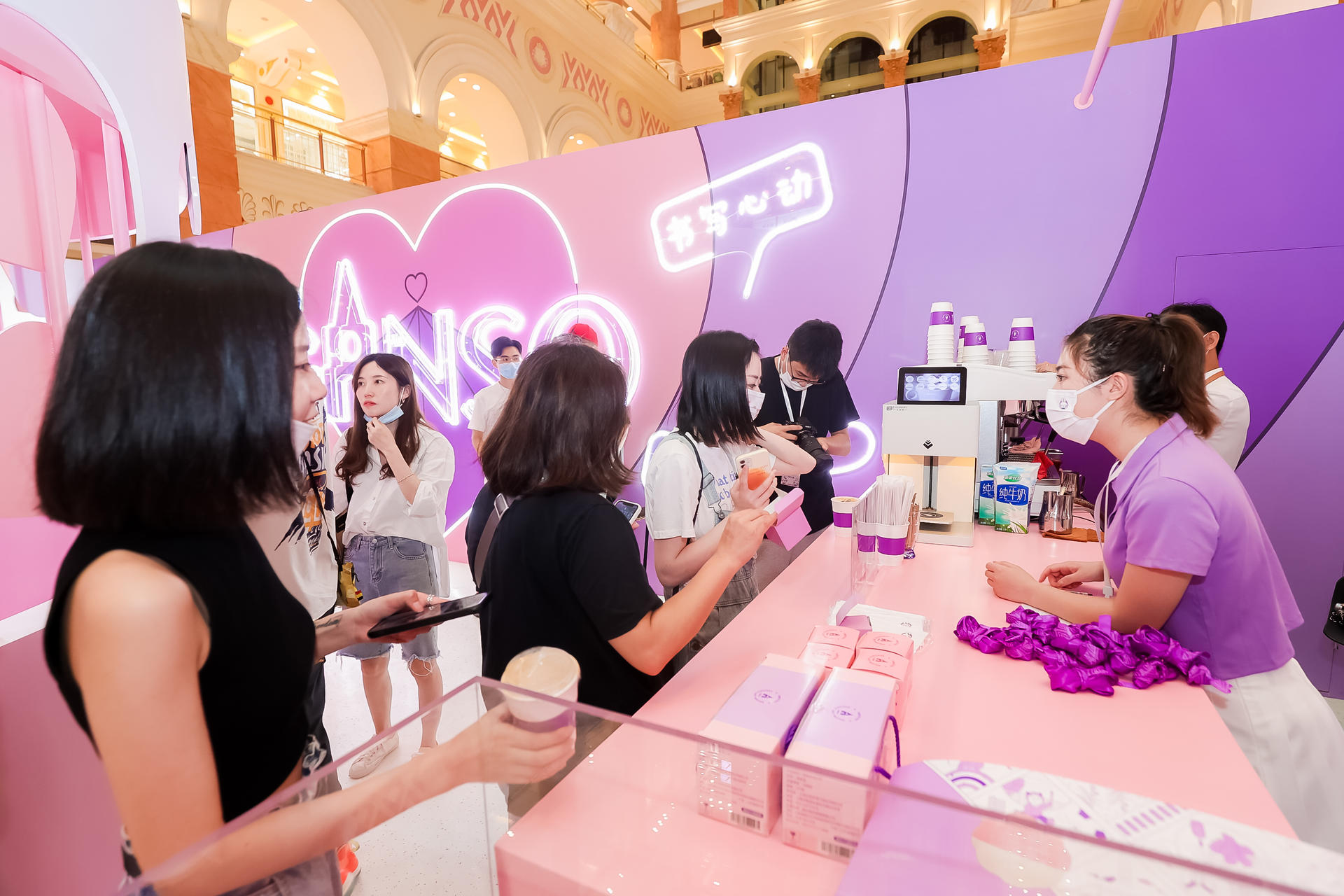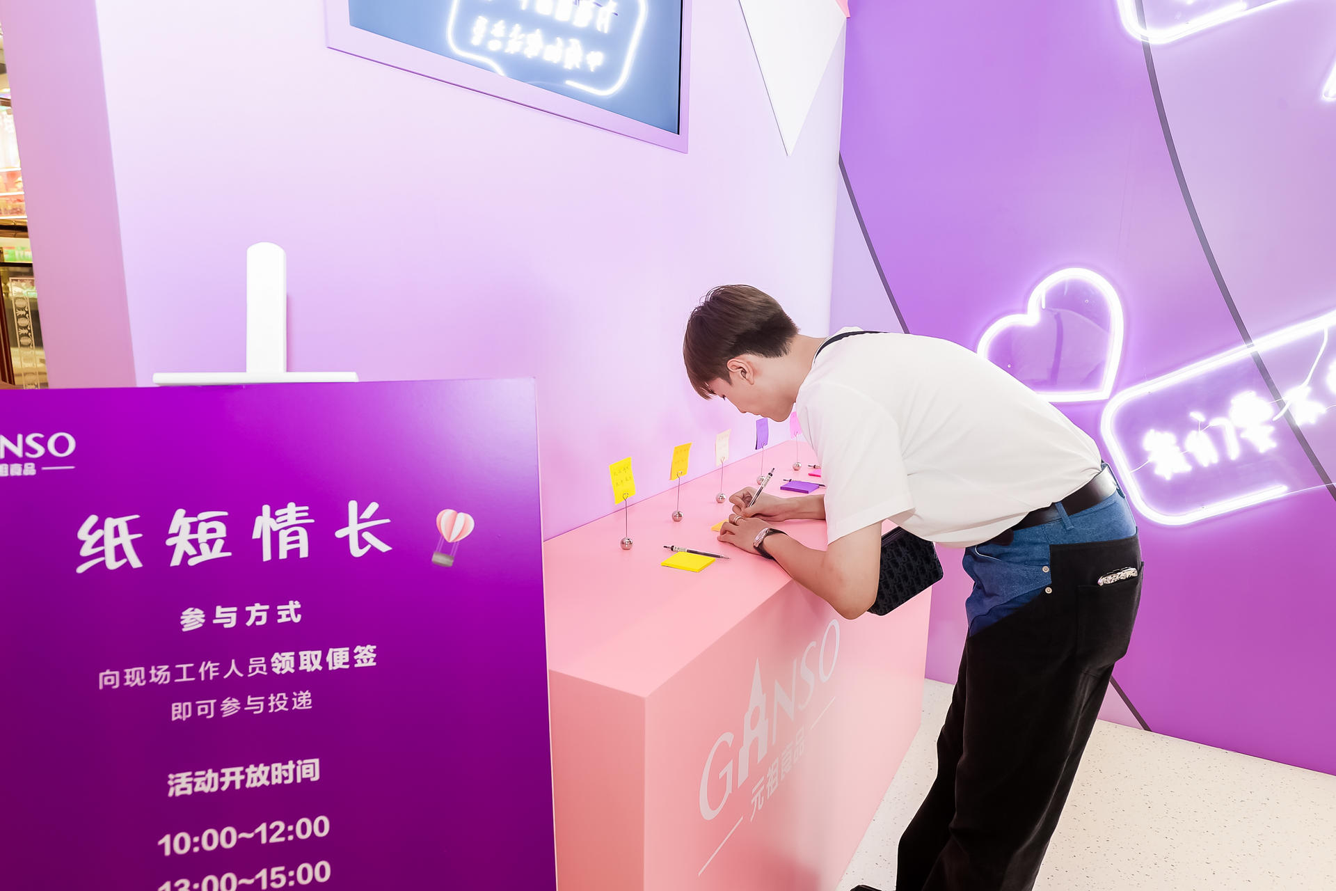 除了浪漫精心的布置,元祖在互動體驗上也花了很多心思。在七夕快閃店內(nèi)設(shè)置了書寫心動、紙短情長互動專區(qū),向現(xiàn)場工作人員領(lǐng)取便簽就可將最深情的告白化成一封真摯的情書,投遞進收集心動的信箱?,F(xiàn)場還有盲盒潮流玩法,如果想要知道愛情是苦是甜,就可掃碼關(guān)注元祖微信公眾號參與盲盒抽獎,憑兌換券至收銀臺就可兌獎?,F(xiàn)場情侶們躍躍欲試,在甜蜜的互動中共同體驗了愛情的美好與心動。元祖還為前來打卡的年輕人們設(shè)計了拍照墻,由浪漫元素創(chuàng)意組成的背景墻一秒就能拍出愛情大片,為你們定格這珍貴一刻。