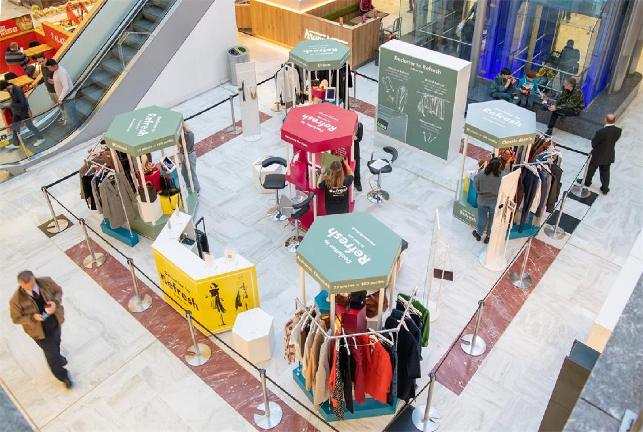 捐贈(zèng)舊衣服后,購(gòu)物者可以去探索“整理更新”區(qū),在那里他們將見(jiàn)到三位專(zhuān)業(yè)造型師,他們隨時(shí)提供免費(fèi)的專(zhuān)家建議,讓他們的衣櫥煥然一新,并向他們介紹時(shí)尚搭配的方法與概念。受到日本專(zhuān)業(yè)整理師近藤麻理惠的啟發(fā),造型師僅使用了25件單品就打造了100個(gè)全新的2019年秋冬時(shí)尚造型。這些精心搭配的服裝將展示在四個(gè)巨大的衣櫥中,讓購(gòu)物者有機(jī)會(huì)瀏覽并獲得本季流行趨勢(shì)的搭配靈感。