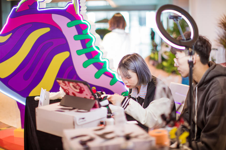 在“「年輕潮力周」暨第三屆全國球鞋定制大師賽”快閃活動里,特地邀請了10位中國頂尖球鞋定制大師來現(xiàn)場定制球鞋,通過“球鞋文化”聚集年輕人,和年輕人對話。