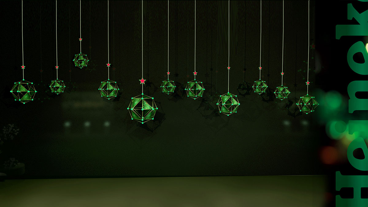 而喜力啤酒那一抹青綠色的主色調(diào),給人一種清爽自然的感覺,有一種夏天蓬勃發(fā)展的動力,象征的是一種向上的生命力,再加上那一個點綴性的紅色五星,青春、活力。而這個喜力啤酒的道具模型展覽展示的設計上,主色調(diào)的綠依舊是大面積的使用,再配上多邊形球體的裝置,放佛有種宇宙星球的即視感,更讓人想一探究竟的沖動和興奮,一起和尚逸文化小編看看這組展覽展示的設計效果圖吧。
