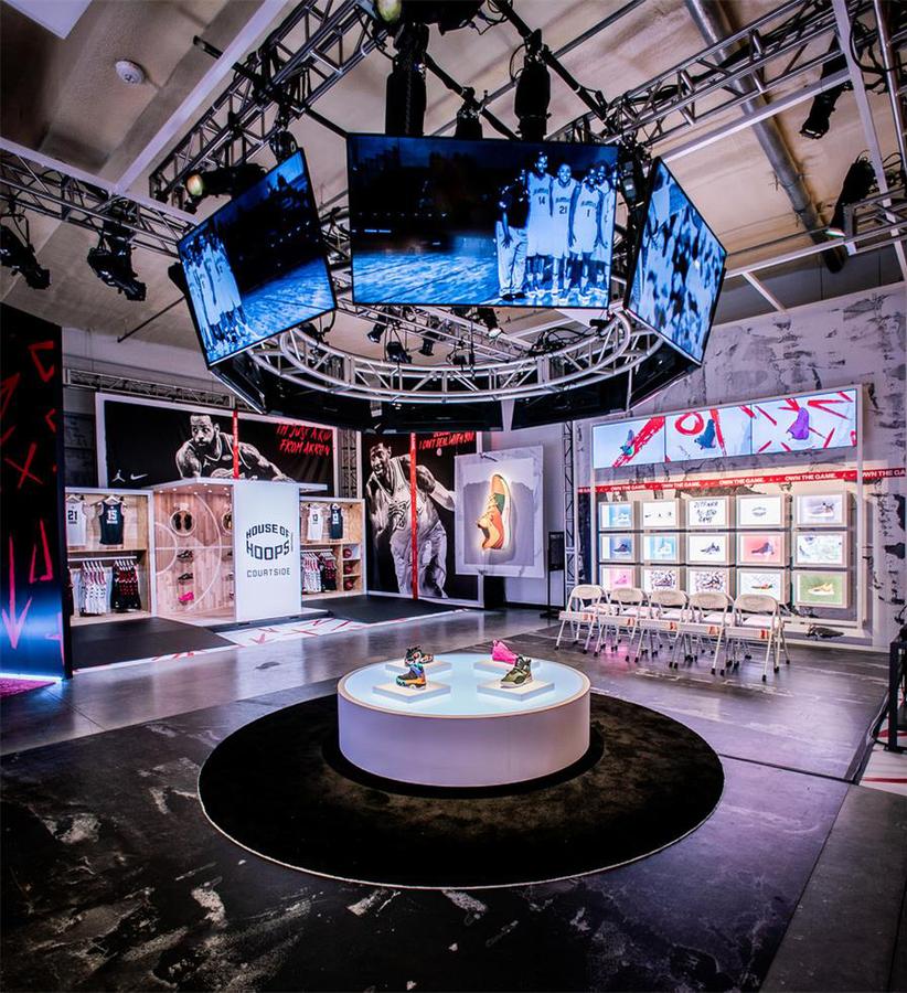 Footlocker.com是全球最大的體育用品在線零售商。 Basketball House Flash Store是全明星周末的中心,位于北卡羅來納州夏洛特的Spectrum Center的街對(duì)面,Nike和Foot Locker使用黃金地段吸引了消費(fèi)者的注意??臻g以原始外殼開始,在短短四天內(nèi)轉(zhuǎn)換為快閃式零售空間。