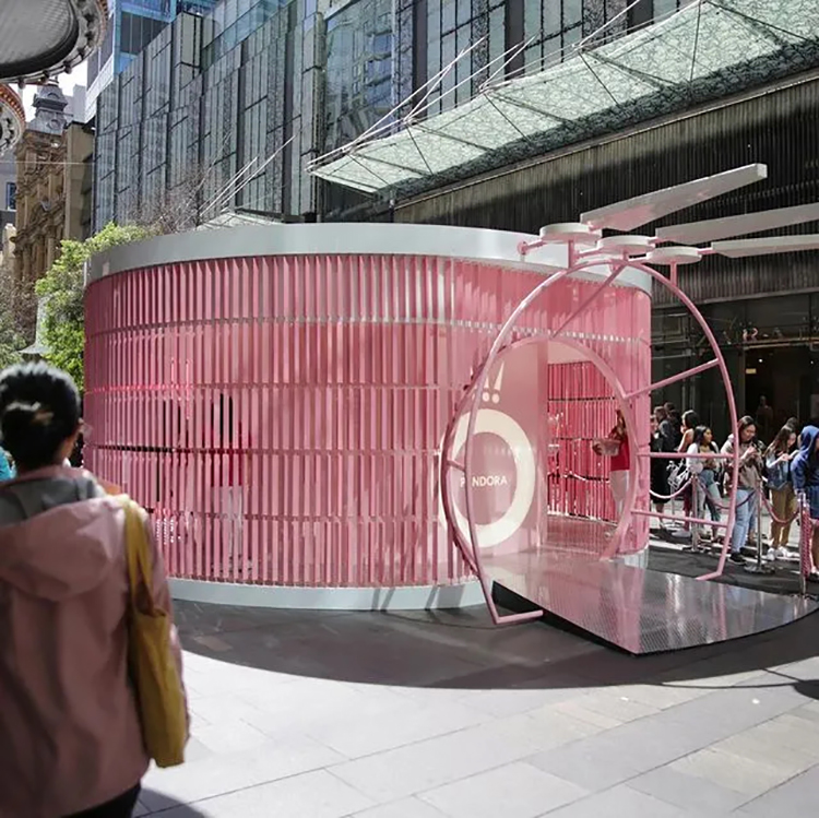 快閃店“Heartbeat Hub”將潘多拉(Pandora)的最新系列與理想的環(huán)境融為一體,在客戶旅程中建立預期,該架構直觀地引導游客,將游客引向體驗的核心。