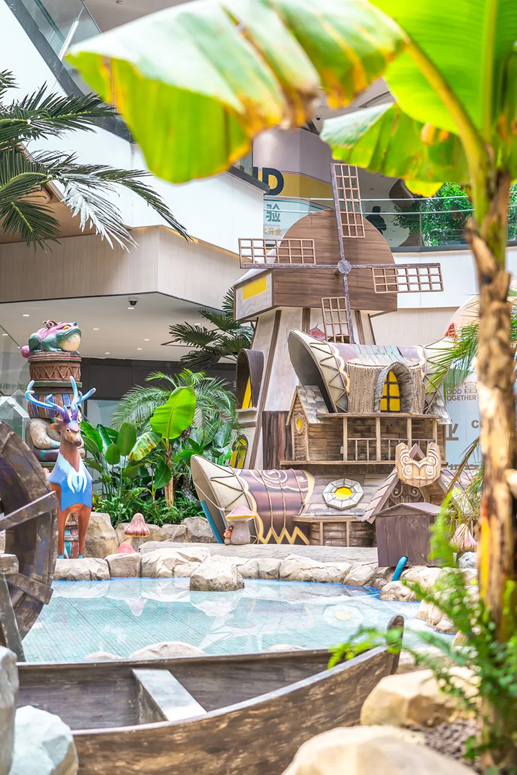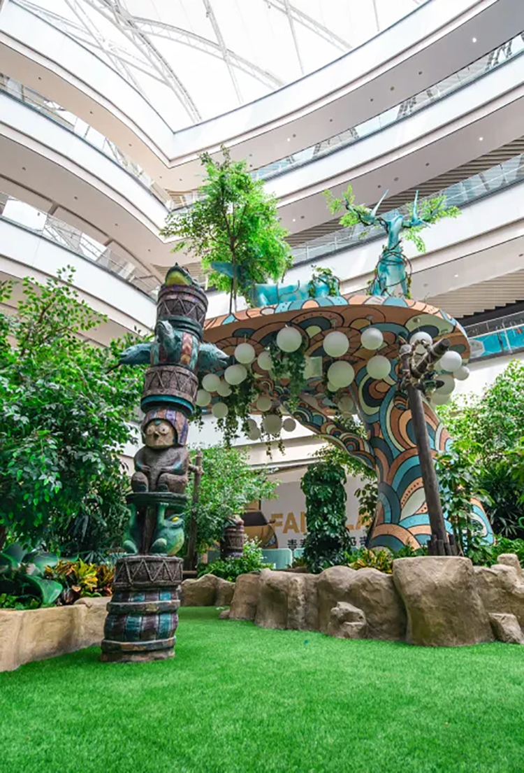 位于商場(chǎng)一樓的“鹿之林”引進(jìn)了超多國(guó)內(nèi)外植物,10米高的森林蘑菇拔地而起,打造了這座沉浸式的生態(tài)植物園!一步一景的真實(shí)感,好像真的來(lái)到熱帶雨林一般,還有森之精靈小鹿、魔法青蛙陪你一同暢游!順著“鹿之林”,走進(jìn)“風(fēng)之谷”,風(fēng)車(chē)水流打造了一個(gè)自然的田園風(fēng)光,加上全新引進(jìn)的新風(fēng)系統(tǒng),站在這兒真的有徐徐涼風(fēng)拂過(guò)呢!伴隨著湖水聲感受大自然的洗禮,逛累了就來(lái)這兒小憩吧!